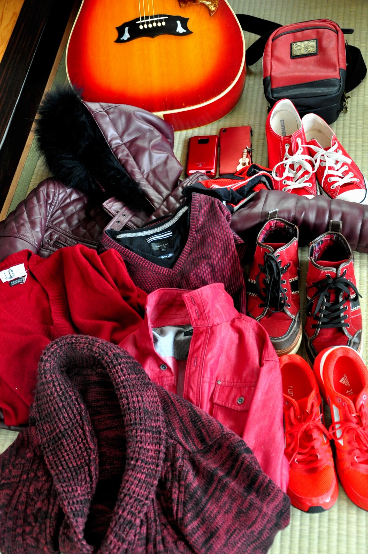 身の回りの物を見ると、僕の持ち物は赤っぽい色の物が多い。