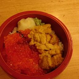 翌朝は5時から開いている青森の市場で、朝からウニ・いくら丼 (笑)